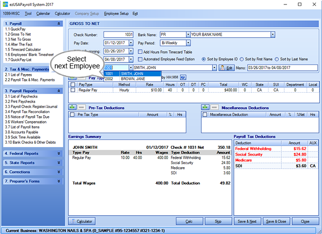 | 1- Choose 1.2 Gross To Net and select a pay period |